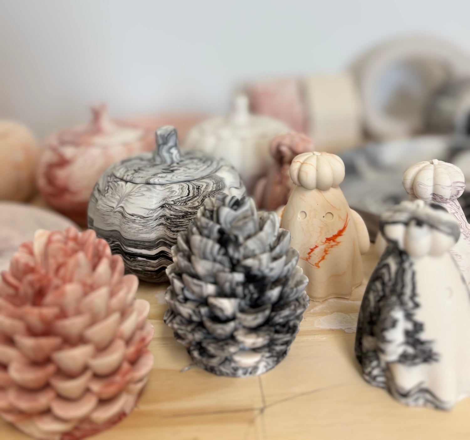 L’automne s’invite à la maison avec des créations artisanales aux formes de citrouilles, feuilles, lunes et pommes de pin. Des objets uniques en jesmonite, à la fois pratiques et décoratifs, pour apporter chaleur et douceur à votre intérieur.