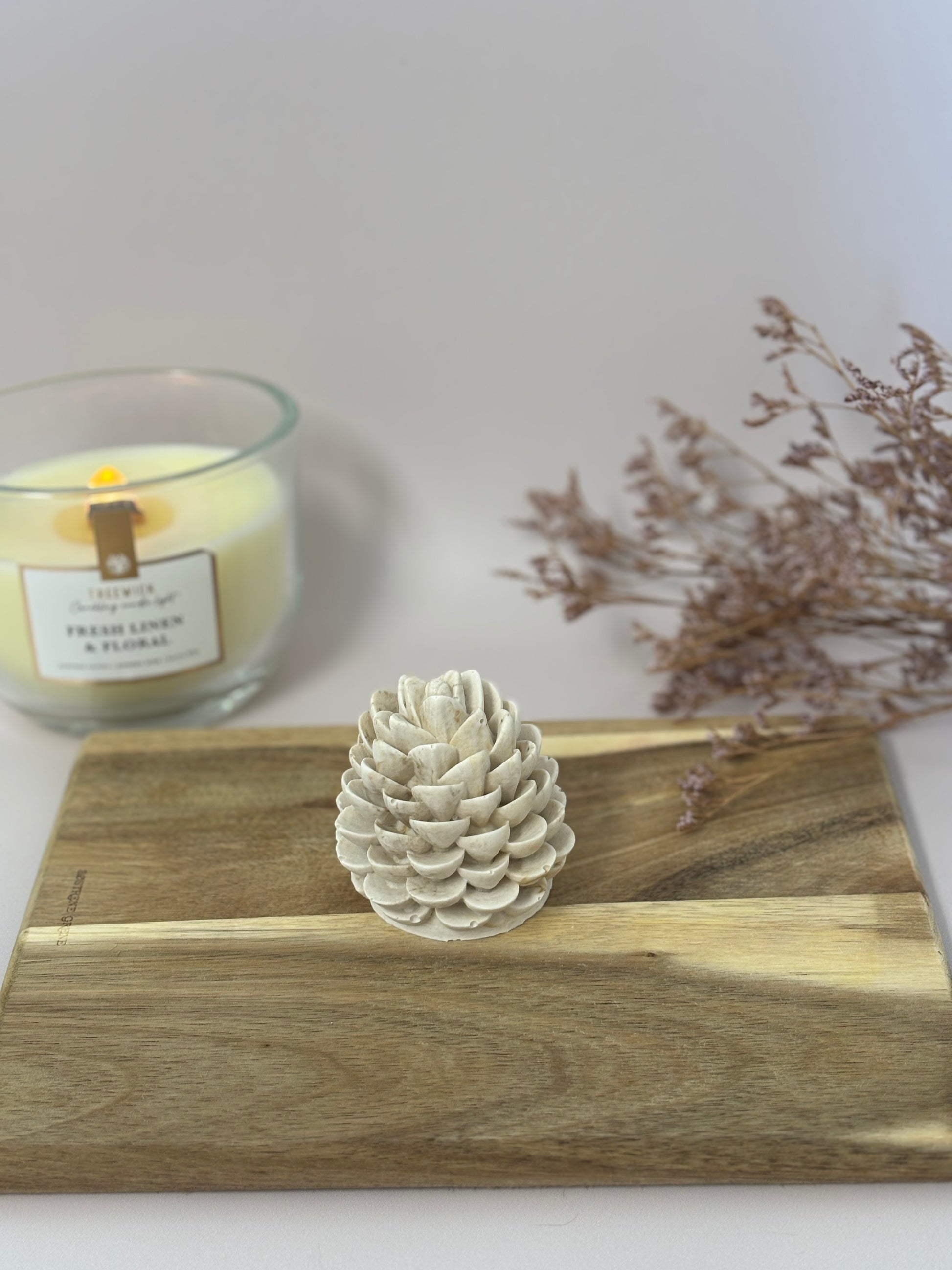 La décoration Aveline, en forme de pomme de pin, est le symbole de l’automne et de ses balades en forêt. Délicatement façonnée, elle se pose simplement sur une table, une étagère ou une composition décorative pour enrichir votre intérieur d’une note chaleureuse et naturelle.