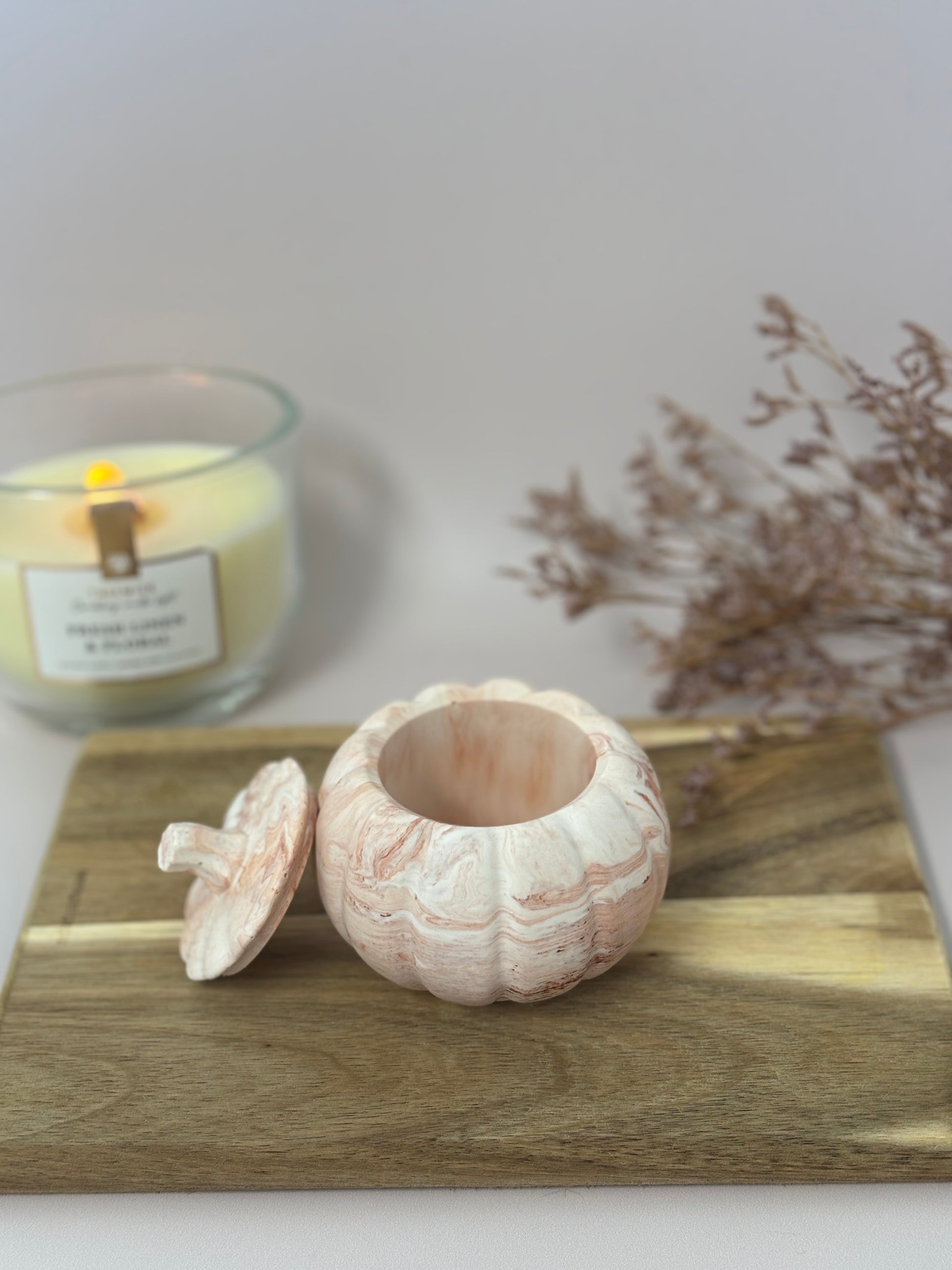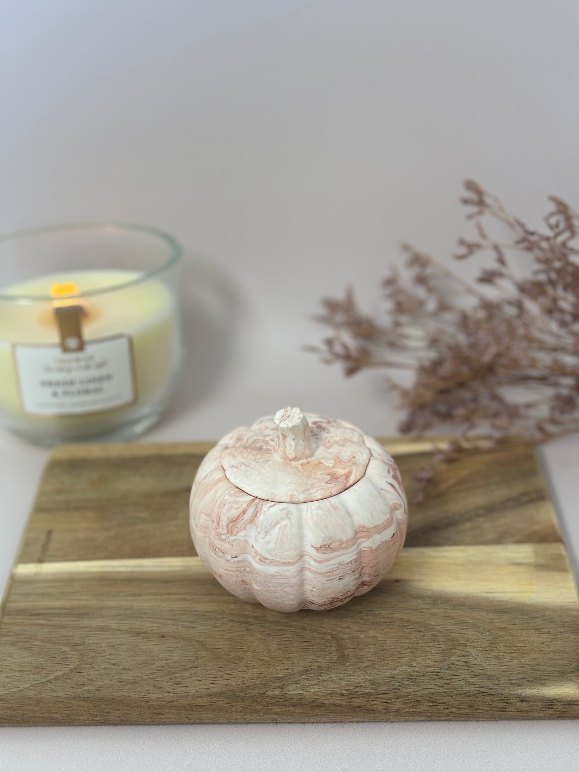 Véritable clin d’œil à l’automne, la boîte Clémentine en forme de citrouille allie originalité et praticité. Son chapeau amovible permet d’y ranger vos petits trésors du quotidien : bijoux, clés, barrettes ou encore une bougie chauffe-plat. Parfaite pour décorer une table, une étagère ou un buffet, elle apporte une touche chaleureuse et ludique à votre intérieur.