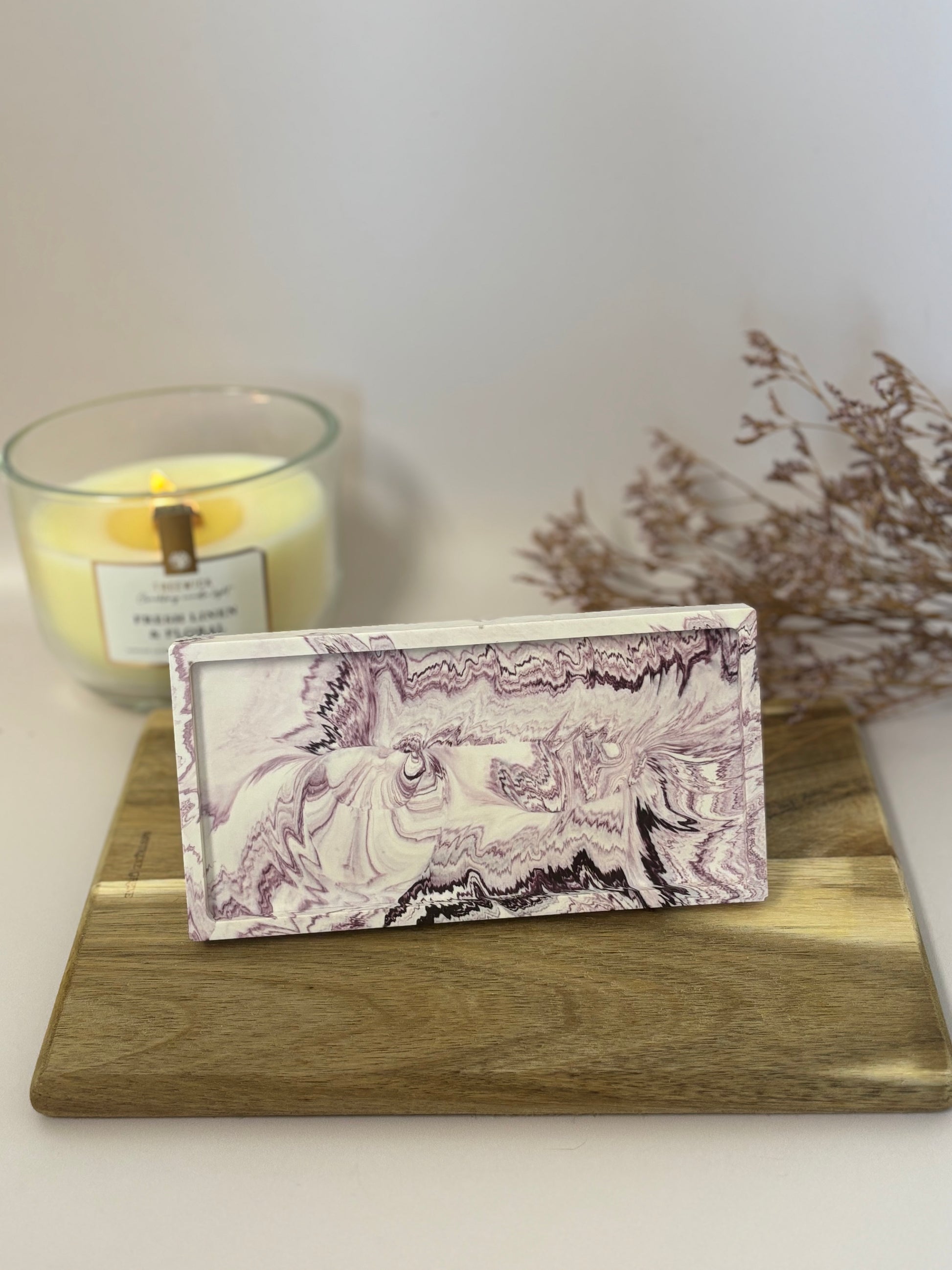 Fabrication artisanale : Chaque plateau est réalisé à la main, rendant chaque pièce unique. Les irrégularités et légères bulles d'air font partie du charme de ce produit artisanal.