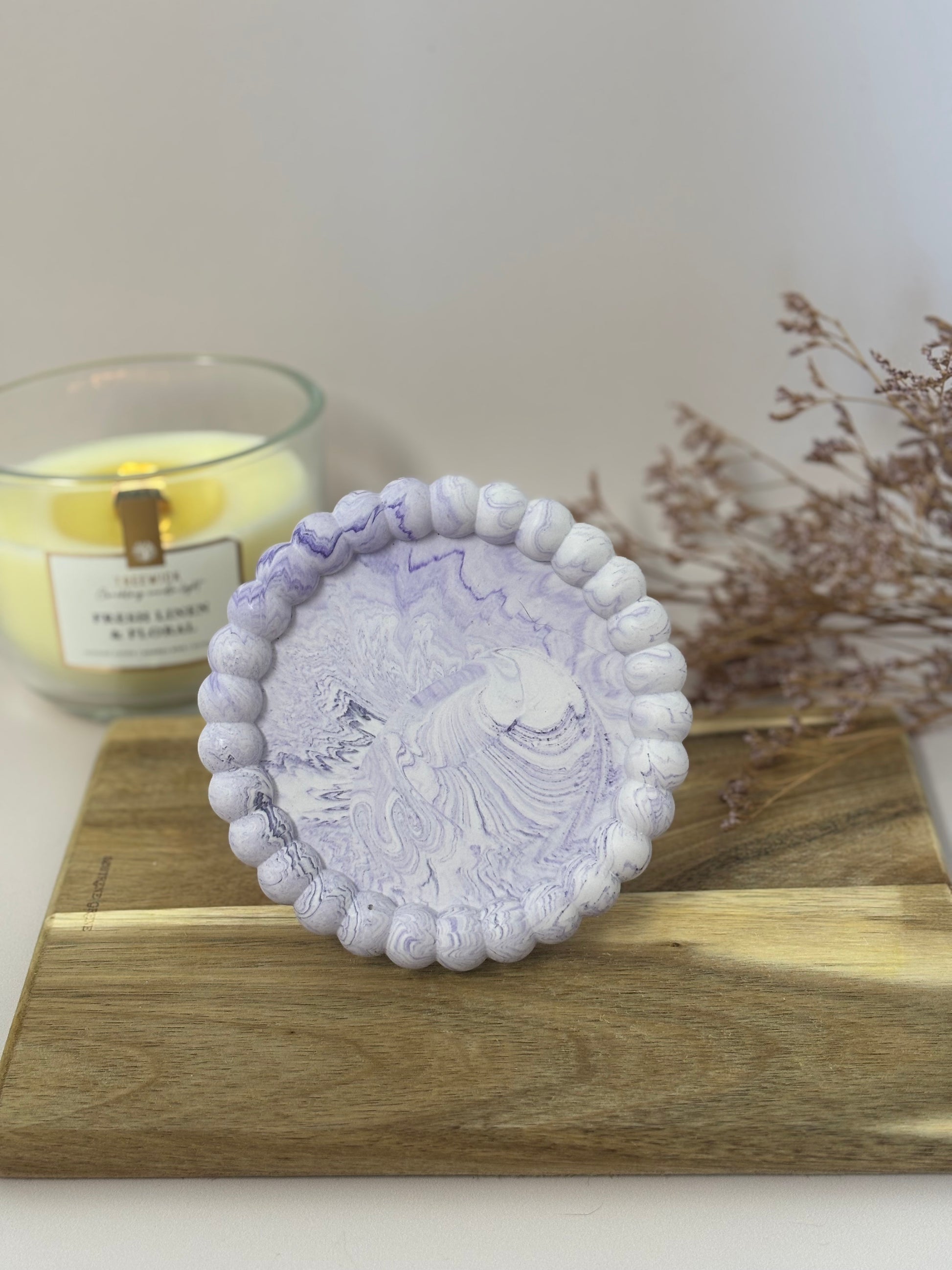 Ajoutez une touche de douceur et de modernité à votre intérieur avec ce plateau entouré de bulles, entièrement conçu à la main en jesmonite. Son design unique en fait une pièce décorative à part entière, tout en étant pratique pour organiser vos petits objets du quotidien.
