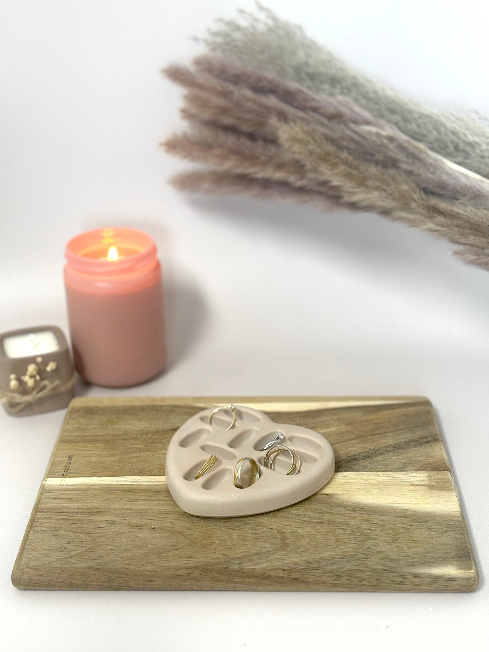 Un porte-bagues en forme de cœur, à la fois pratique et décoratif, conçu pour ranger et mettre en valeur vos bagues avec délicatesse. Ses multiples emplacements permettent de garder vos bijoux à portée de main tout en embellissant votre intérieur.