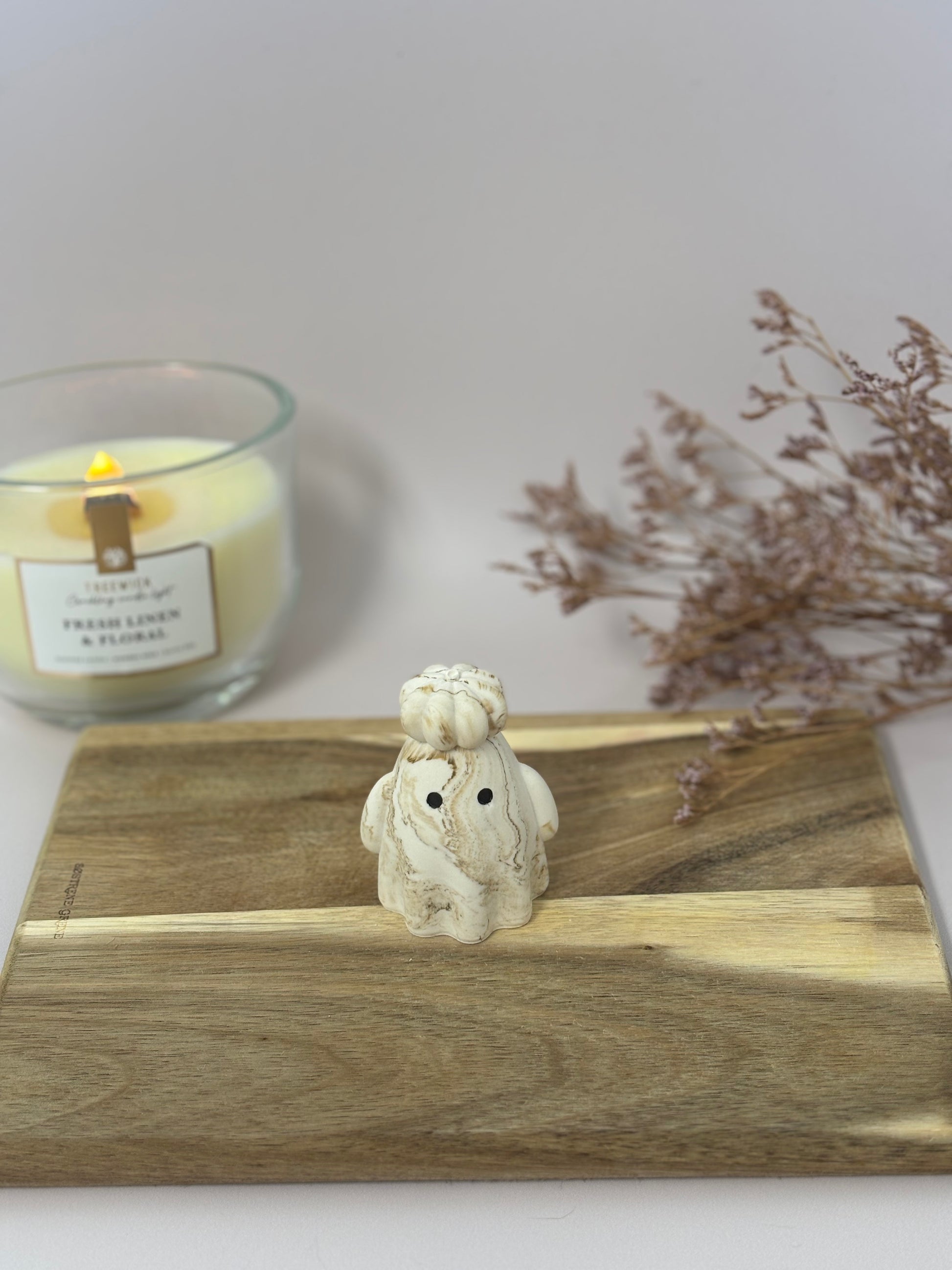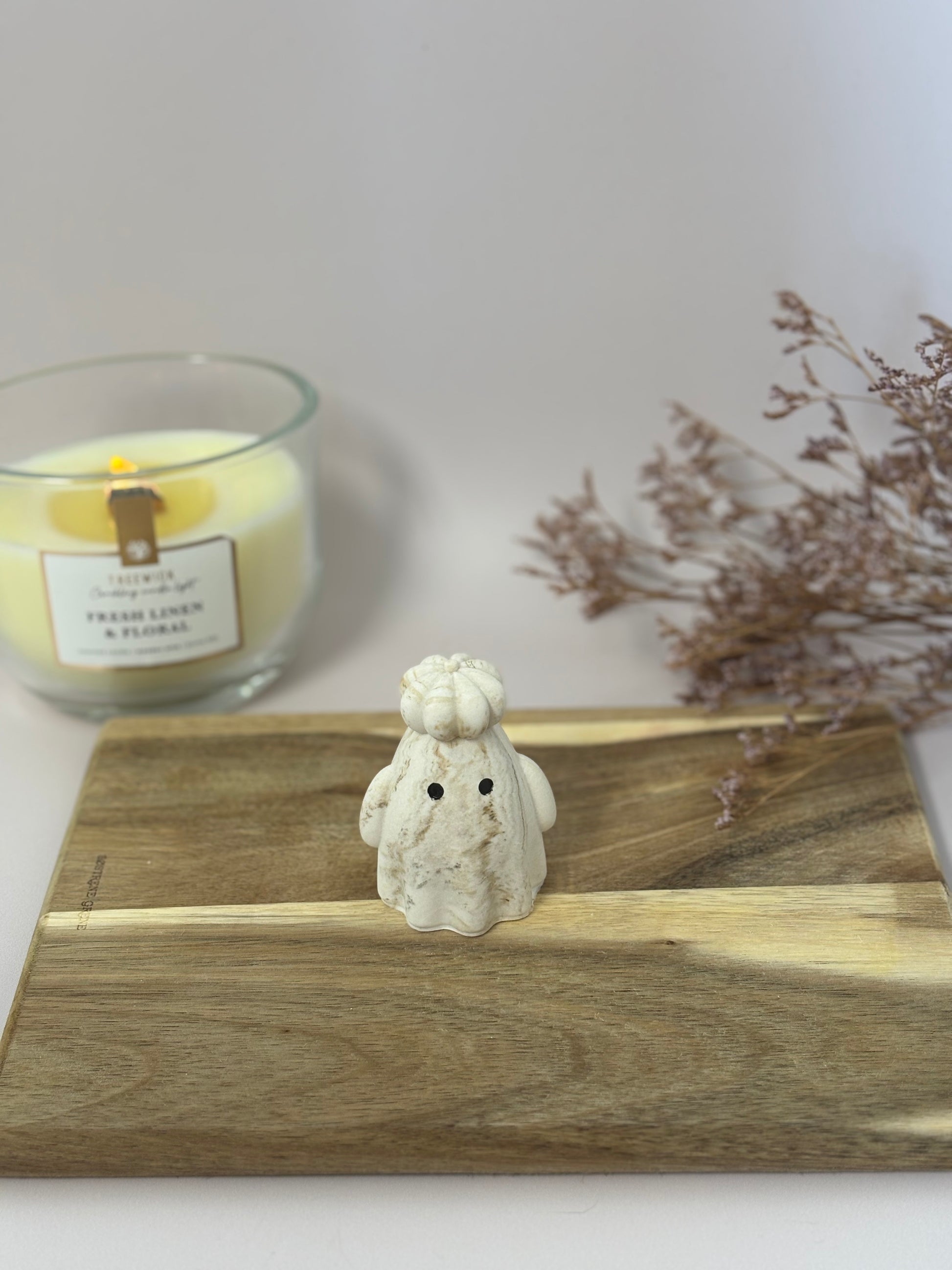 La décoration Sam représente un adorable fantôme coiffé d’une citrouille. Idéale pour Halloween ou pour ajouter une note automnale pleine de caractère, elle se glisse parfaitement dans votre décoration de saison. À poser sur une étagère, une table ou au cœur d’une composition, elle apportera une touche fun et artisanale à votre intérieur.