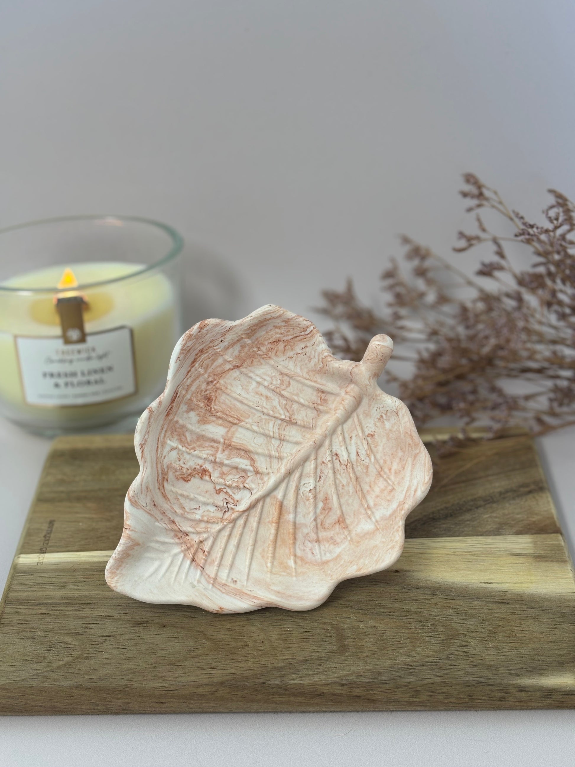 Le vide-poche Sienna, inspiré par la douceur des feuilles d’automne, est une pièce décorative poétique et fonctionnelle. Idéal pour accueillir vos bijoux, clés ou accessoires, il apporte une atmosphère automnale élégante à votre intérieur. Posé dans une entrée ou sur une table, il évoque la nature et la saison des feuilles dorées.